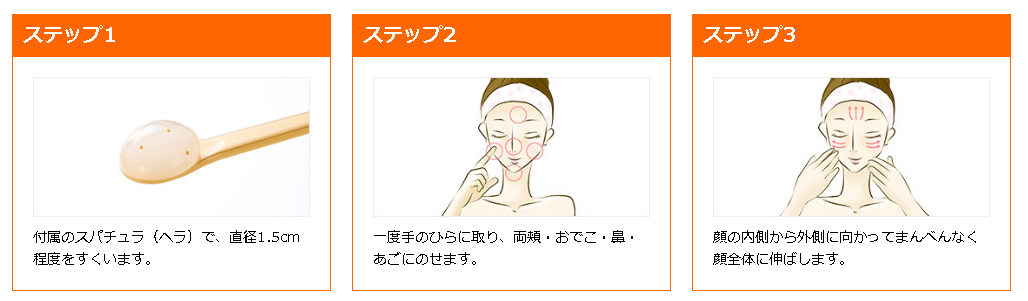 3・顔の内側から外側に向かってまんべんなく顔全体に伸ばします。